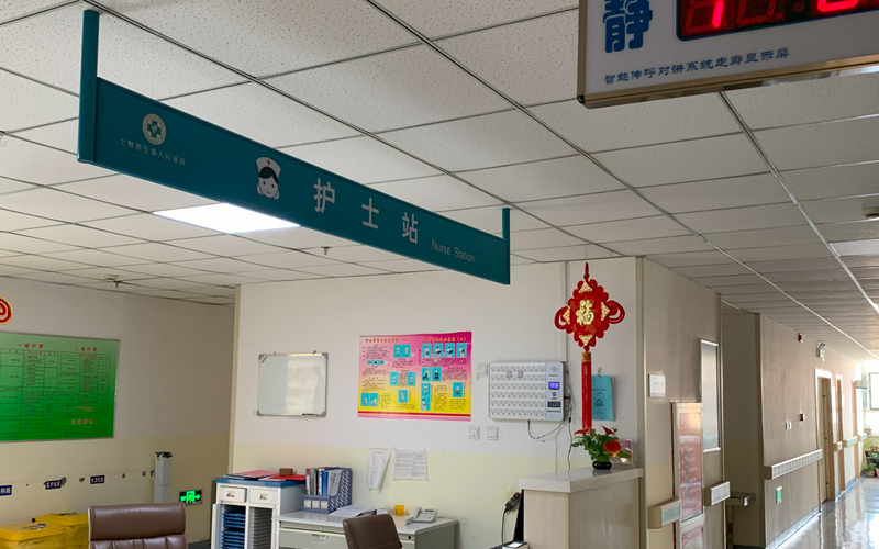 护士站安装医护对讲系统,可与病房床头呼叫器分机双向呼叫及语音对讲。