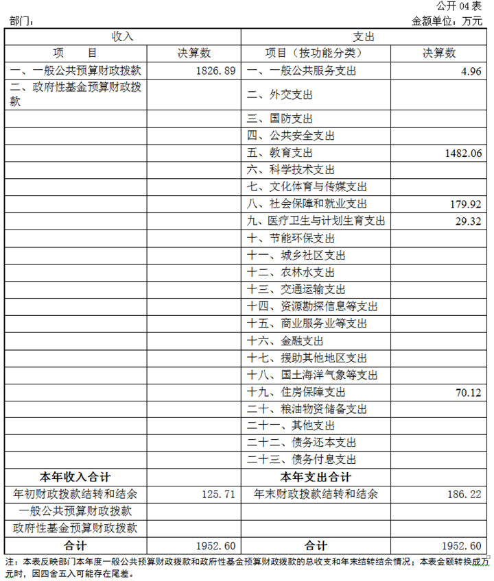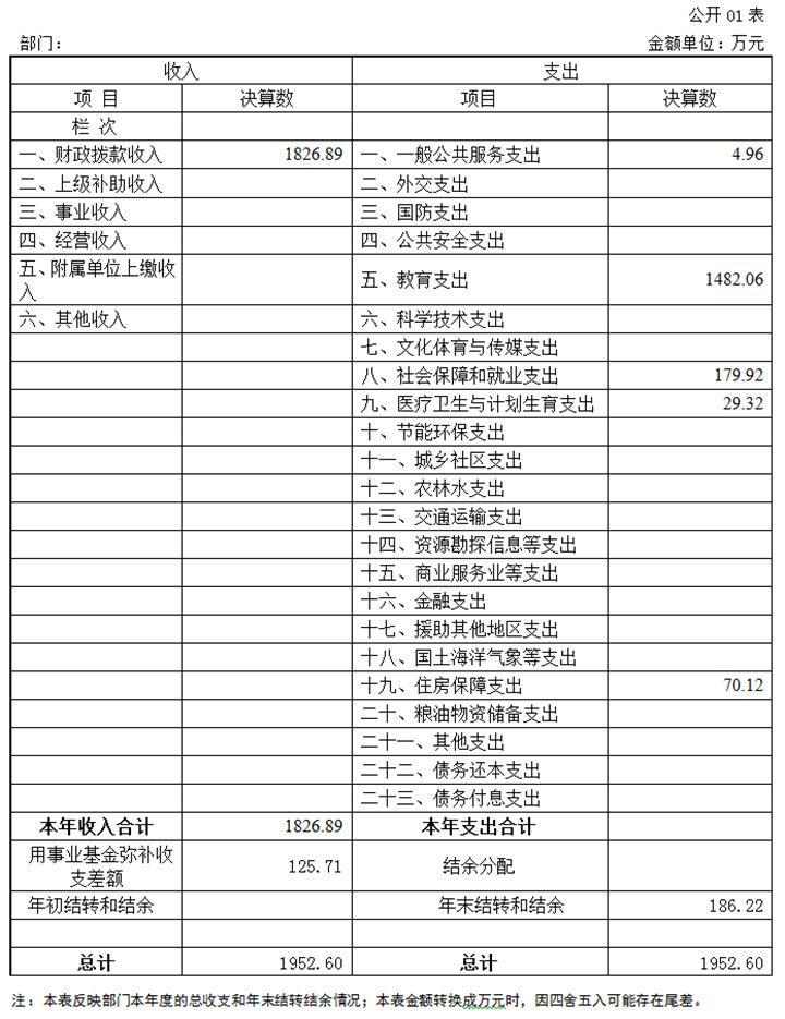 2018年度收入总计1952.60万元(含用事业基金弥补收支差额、年初结转和结余)、支出总计1952.60万元(含结余分配、年末结转和结余)。与2017年相比,收、支总计各增加87.94万元,增长4.72%,主要原因:一是政府发放2017年度工作性奖励;二是增资;三是我校成人开放江南登录网站招生人数较上年略有回升。