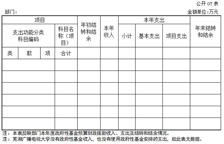 七、政府性基金预算财政拨款收入支出决算表