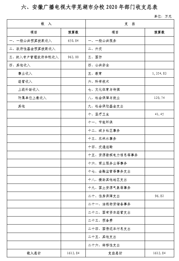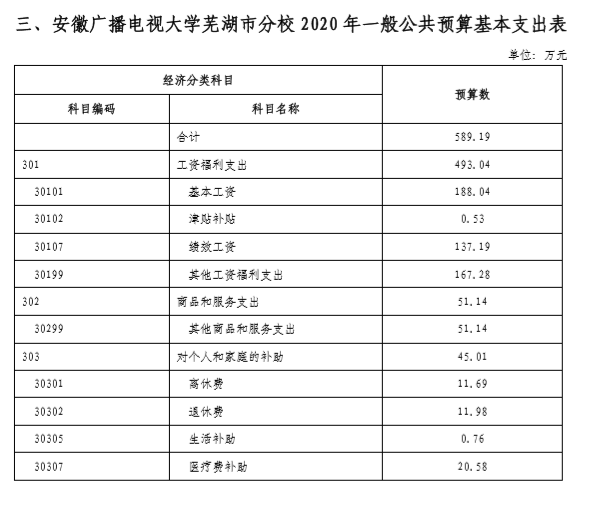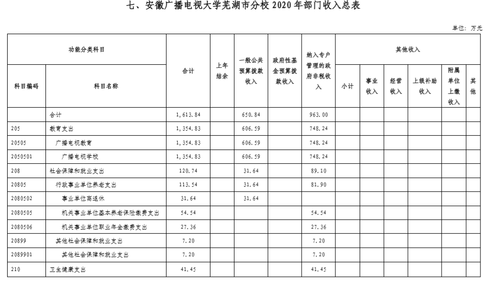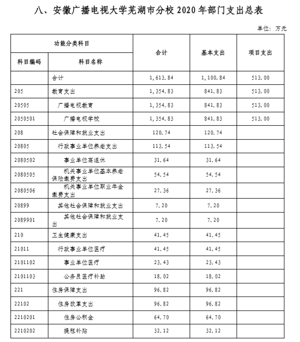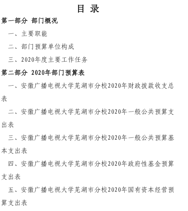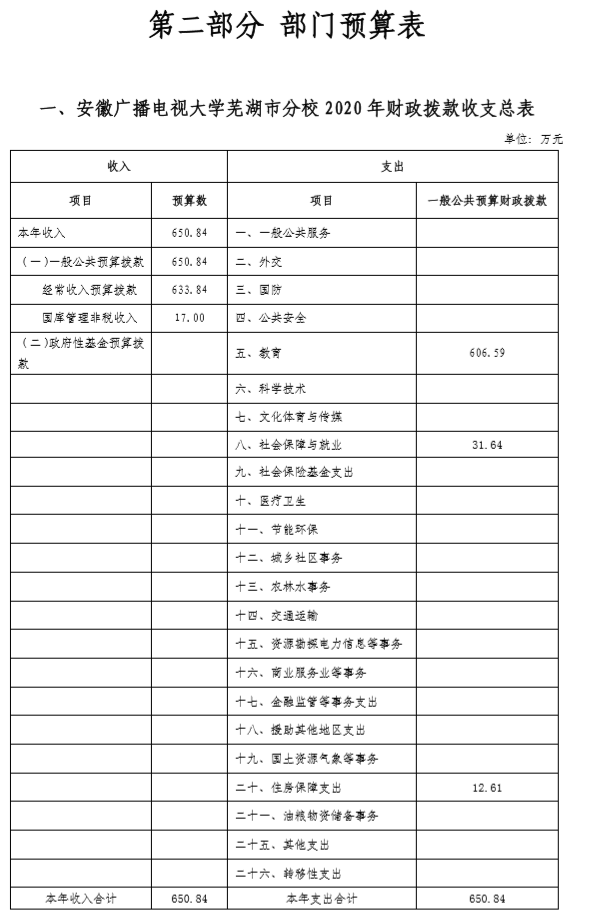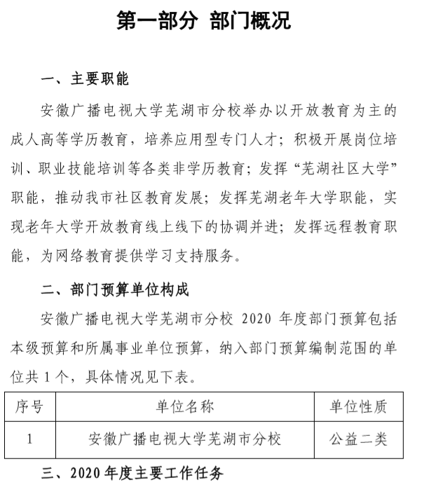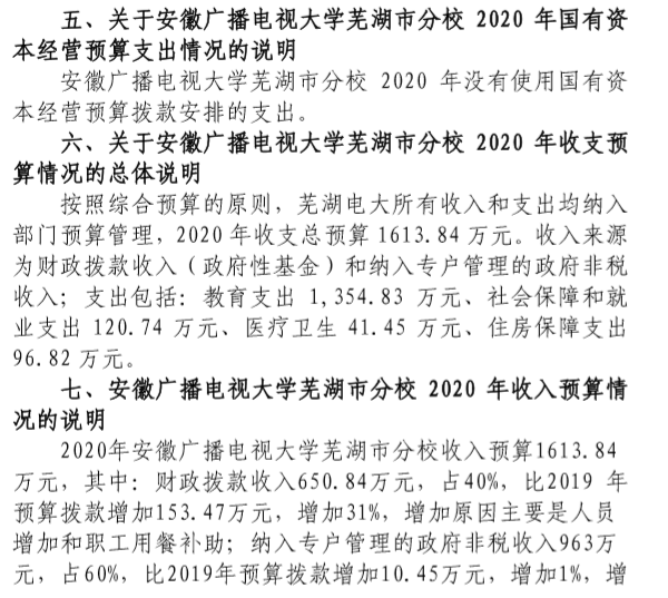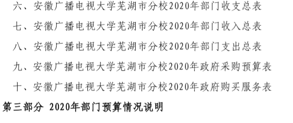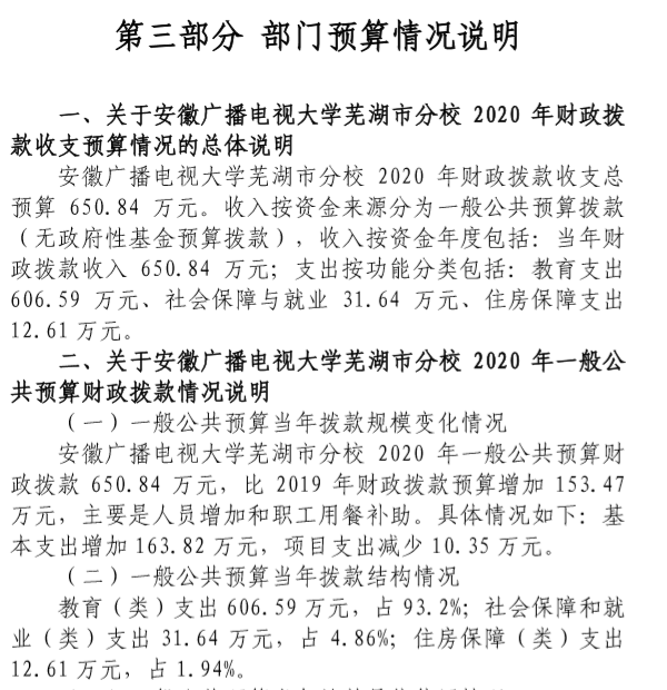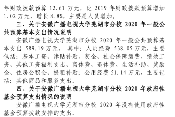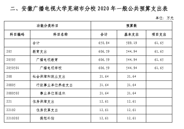 安徽广播电视大学芜湖市分校2020年部门预算