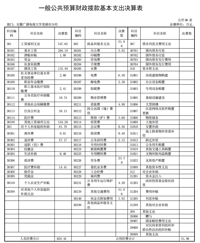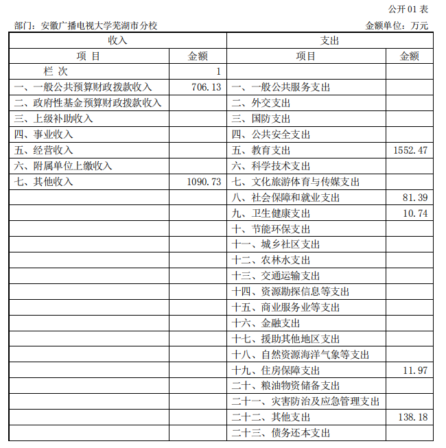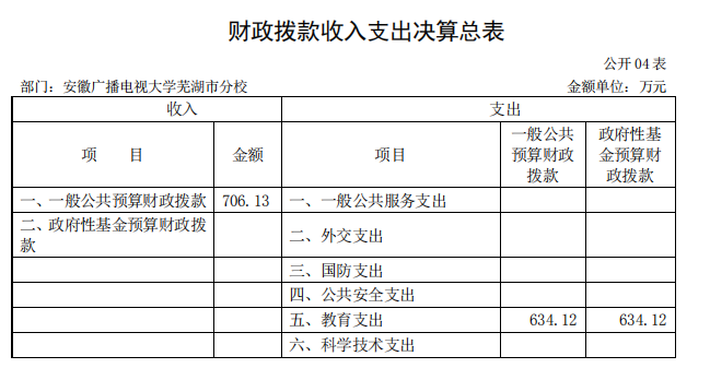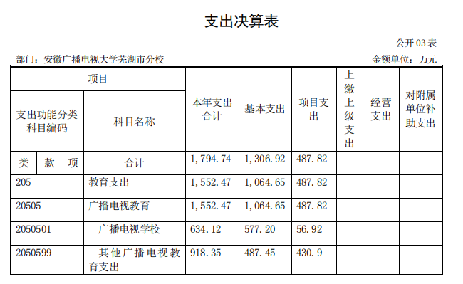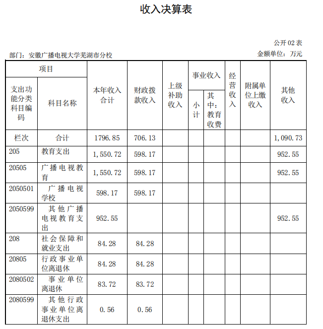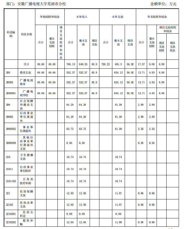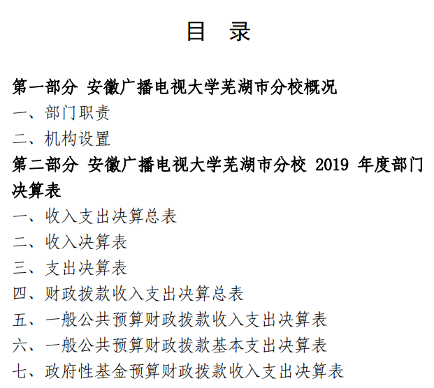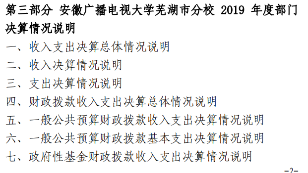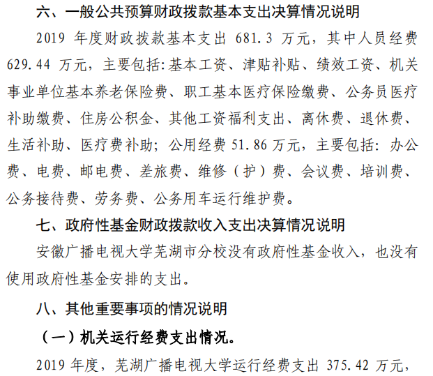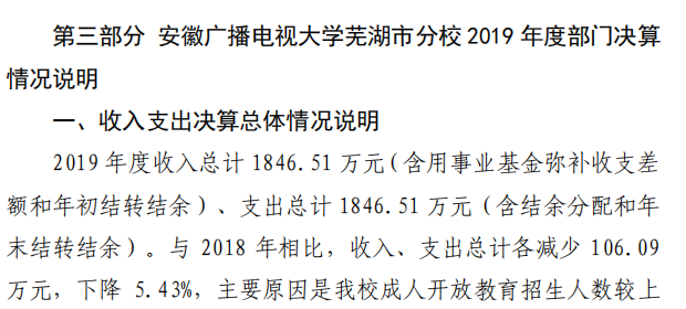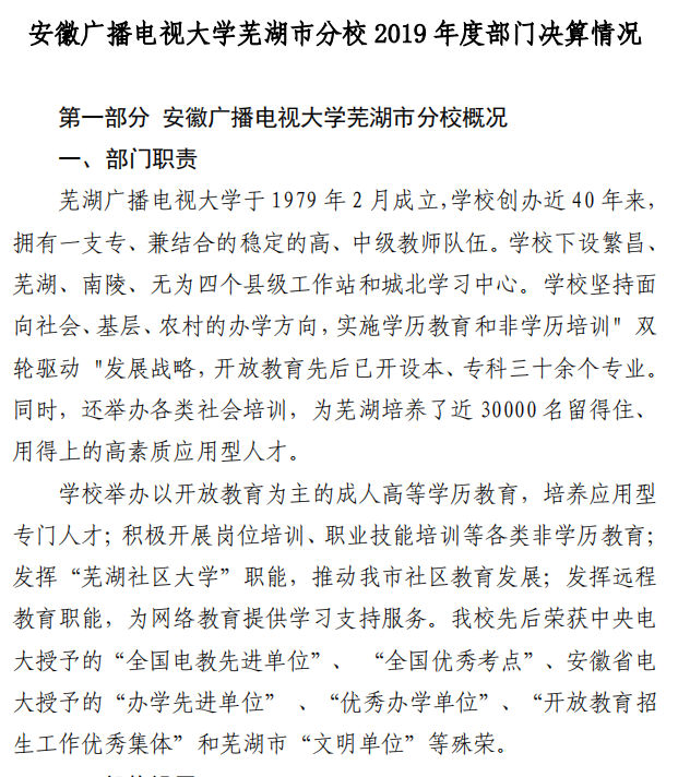 安徽广播电视大学芜湖市分校 2019 年度 部门决算