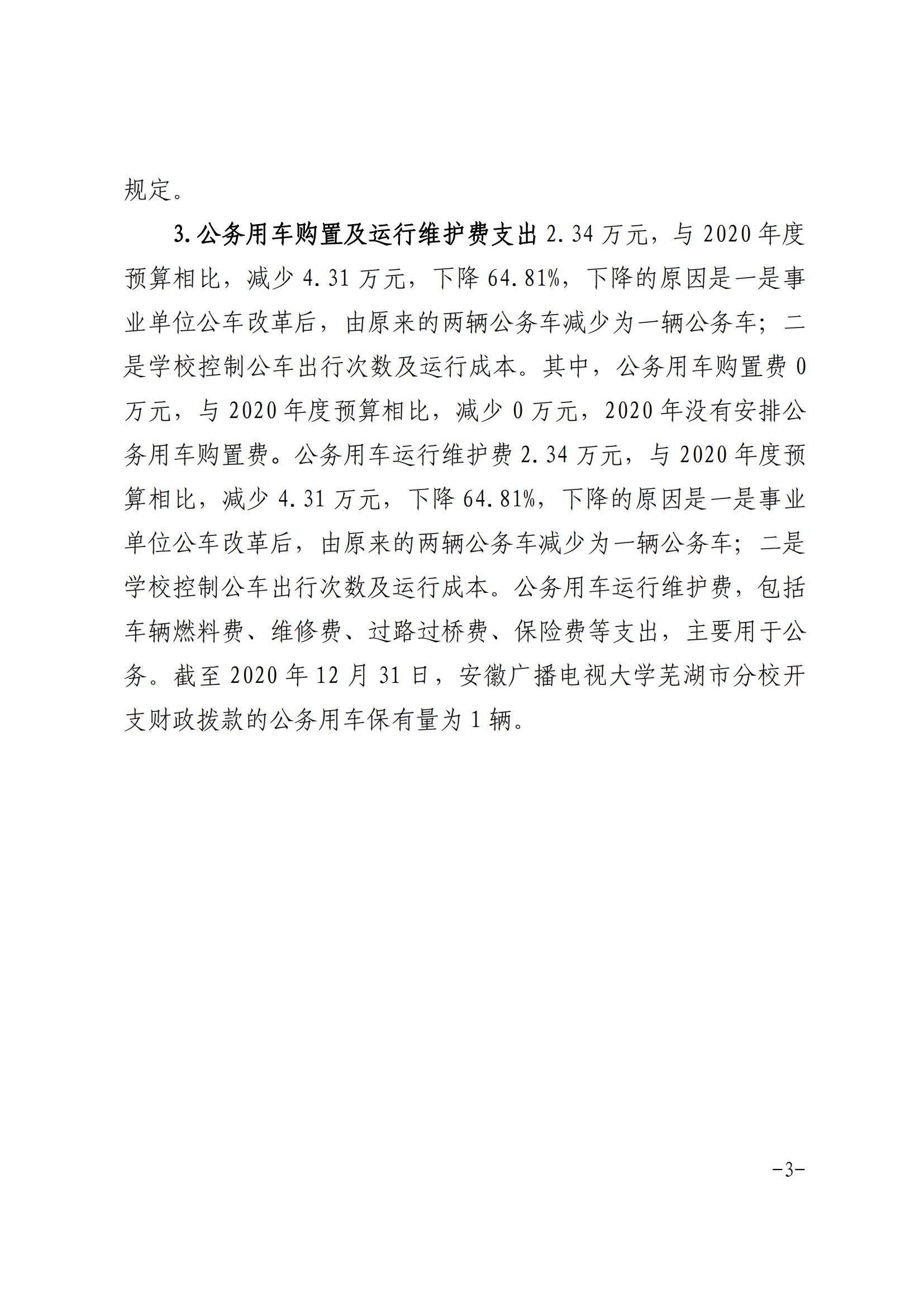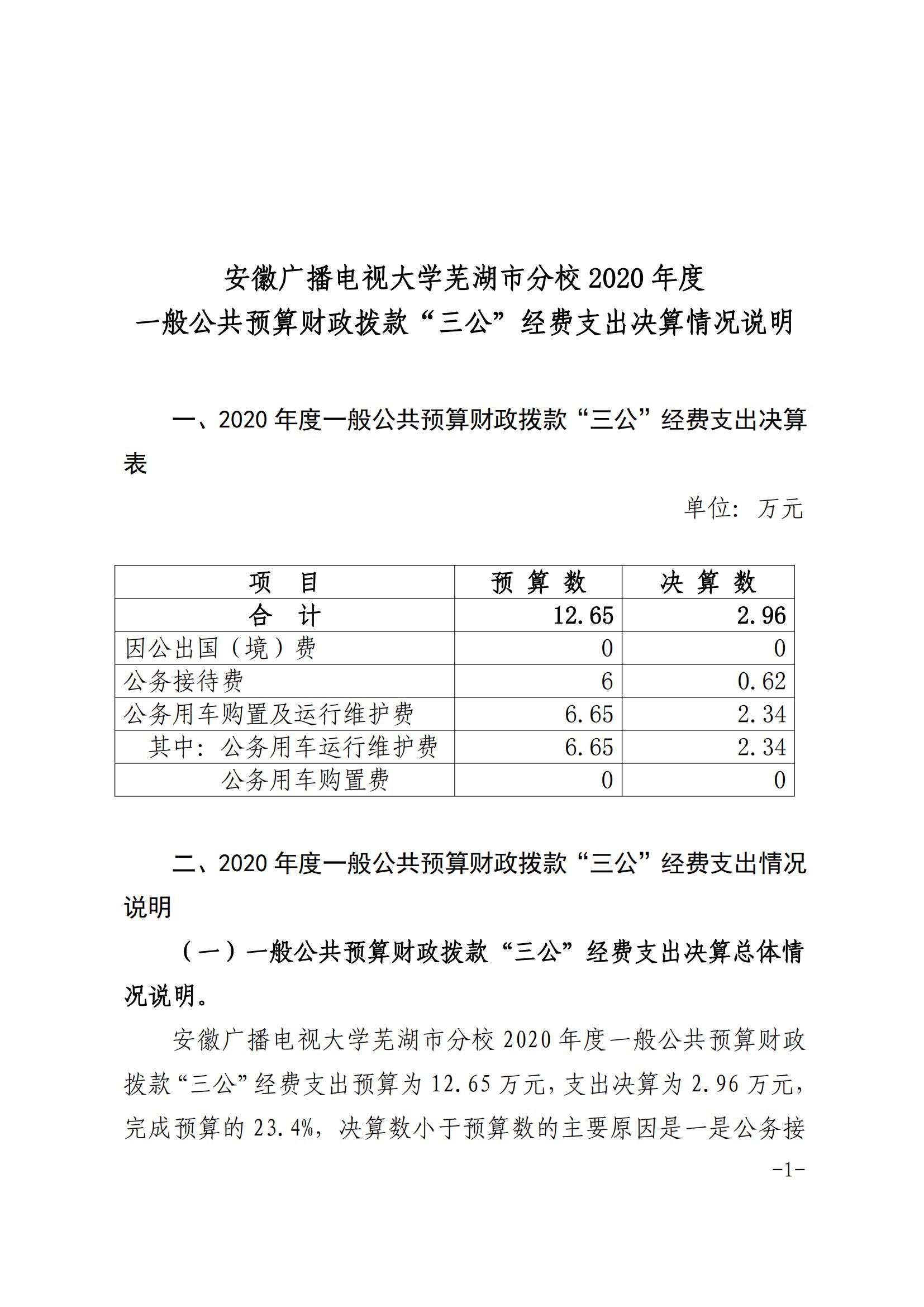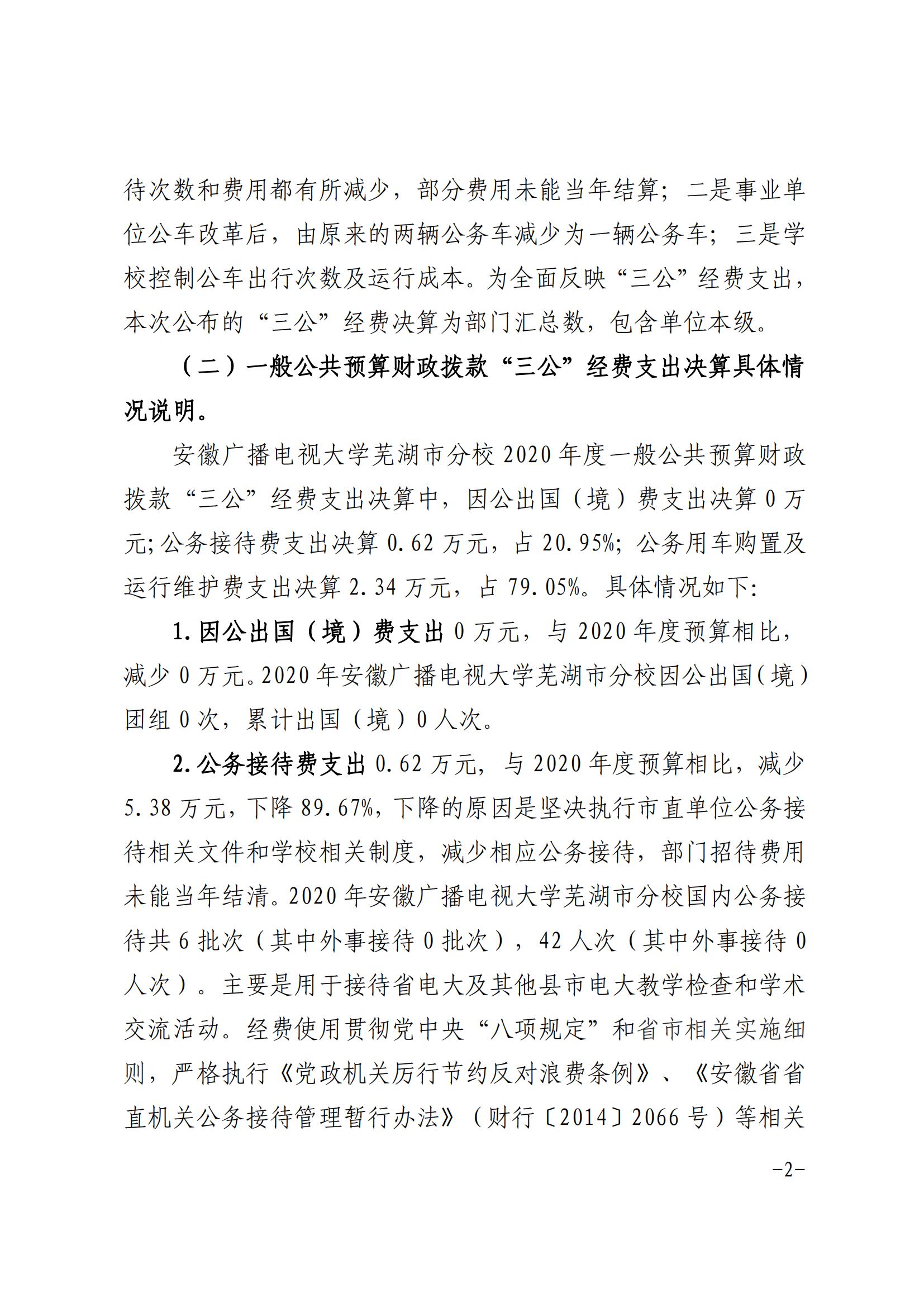 安徽广播电视大学芜湖市分校 2020 年度 一般公共预算财政拨款“三公”经费支出决算情况说明