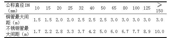 表1医用气体水平直管道支吊架最大间距