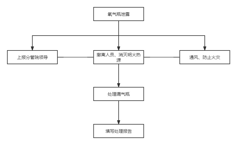 当气瓶发生泄漏时,立刻上报分管院领导,立即撤离人员,消灭场所的明火及热源,及时打开门窗通风以降低浓度,防止火灾或爆炸,并采取适当措施对泄漏气瓶进行应急处理.